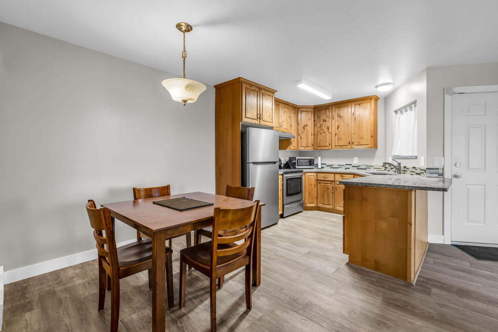 Top floor remodeled 2 bed, 2 bath fully furnished Kamas condo. Newly painted, new flooring, lighting, granite countertops, and new stainless kitchen appliances. Great location, centrally located. 3 minutes to the Aquatic Center. 25 minutes to Main Street Park City. 20 minutes to the Deer Valley Mayflower lift. Fully furnished and ready to move in. Meadow views and Deer Vally right outside your windows. Washer/Dryer included. 1 covered parking spot + 1 outdoor spot. Full size washer/dryer inside unit.